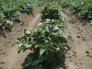 Wir haben momentan die Knolle Erika im Boden. Sie hat eine Reifezeit von etwa 140-160 Tagen. Eine Mutterknolle bildet je nach Sorte und Witterung 10-20 Tochterknollen.